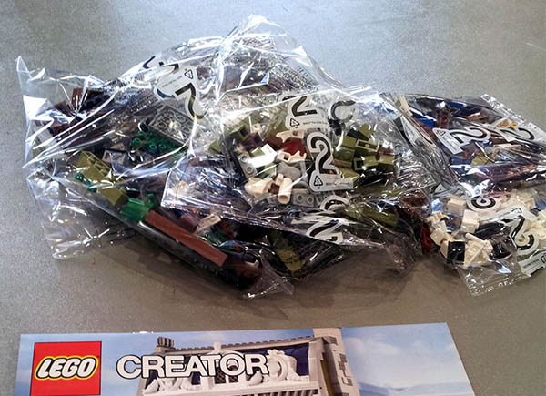 | There was a slight issue with coordinating the build across a group. With three sets of numbered bags, it seemed logical to break into three groups, however it didn't quite work out this way. There are four booklets in this set and some of bags don't align with the instructions (eg. booklet four is for bags numbered three) it took us a little while to sort everything out. This is hardly a criticism as it only applied due to the group way in which we decided to build the set, but it was a little odd for a company with such attention to detail to not match bag numbers to booklets numbers. Nonetheless the build went ahead with each of the team building one floor of the model.