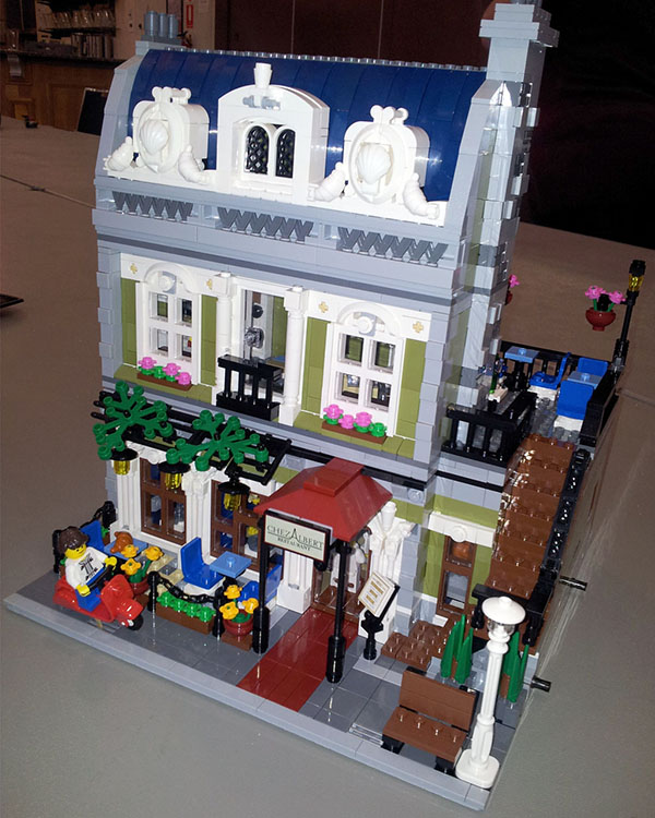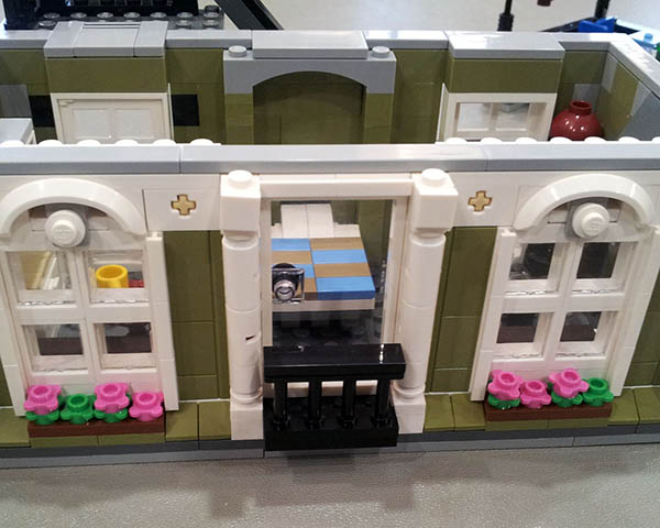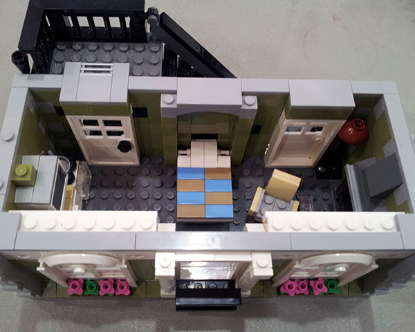 Team 2 (Second floor) enjoyed building both the outdoor dining terrace as well as the 1st floor apartment. Highlights were getting to use the new dark red domes as flower pots for the hanging flower pots as well as using the same part as a lamp shade for a standing lamp. Great detail was also used in the fire place and the foldaway murphy style bed.