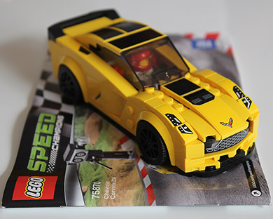 It includes four minifigures, a workshop with a winning podium at the back, a starting light, a LEGO trophy, a checkered flag, an engine lift and extra engine for the hot rod, two awesome vehicles and a ton of stickers!